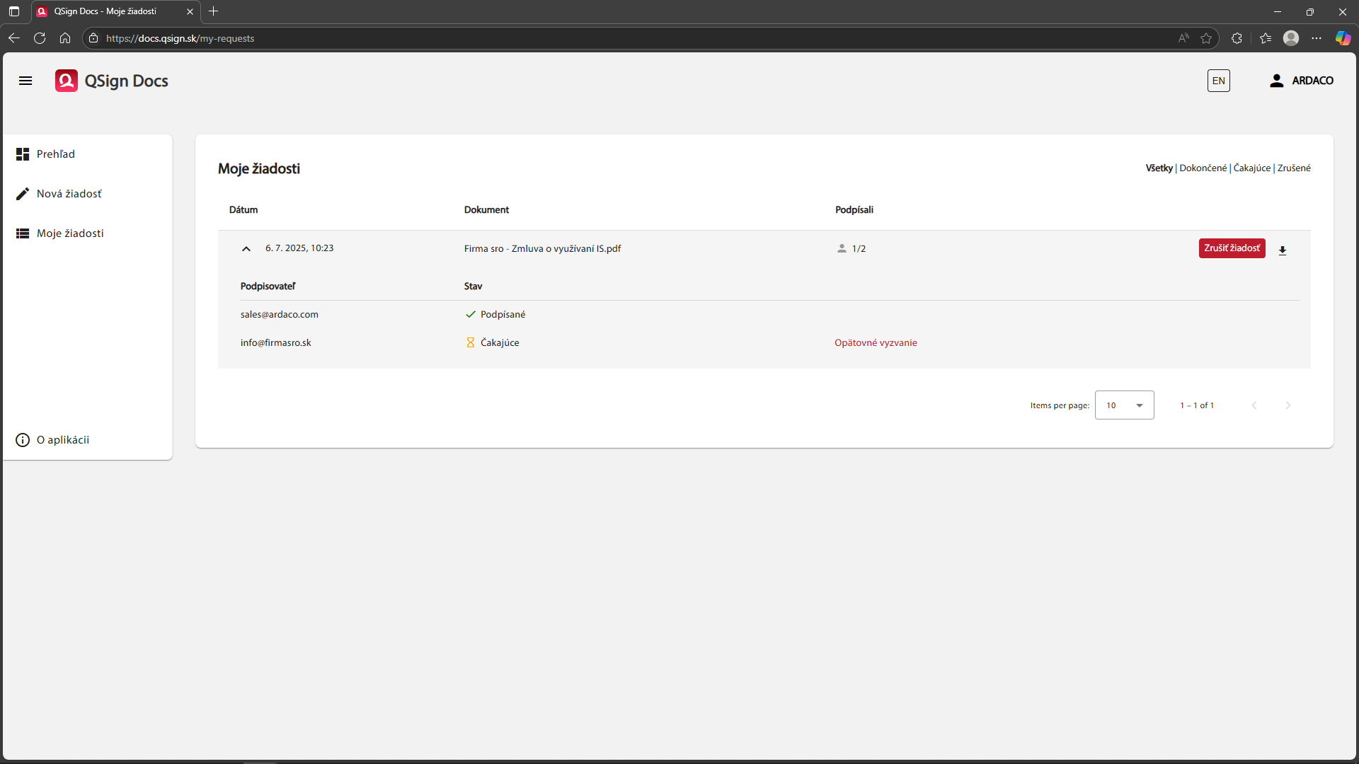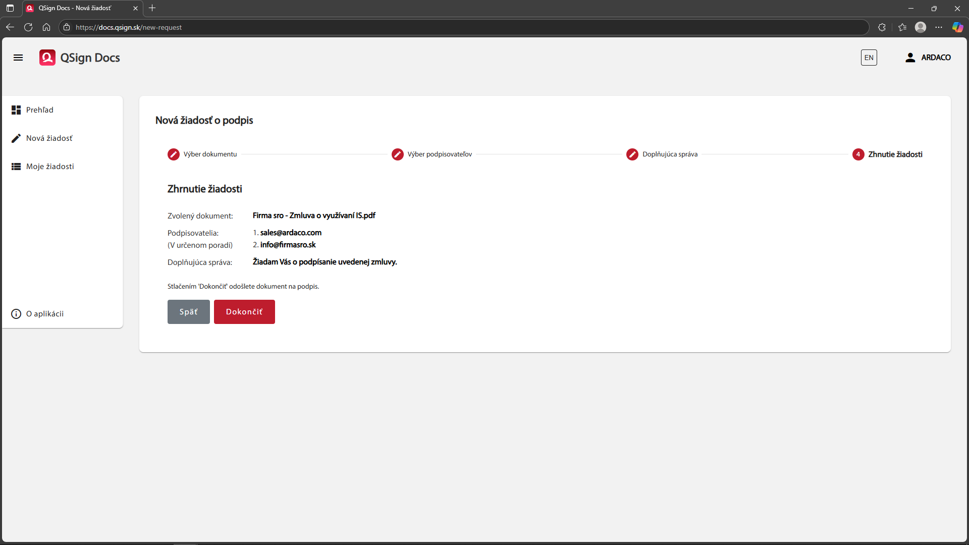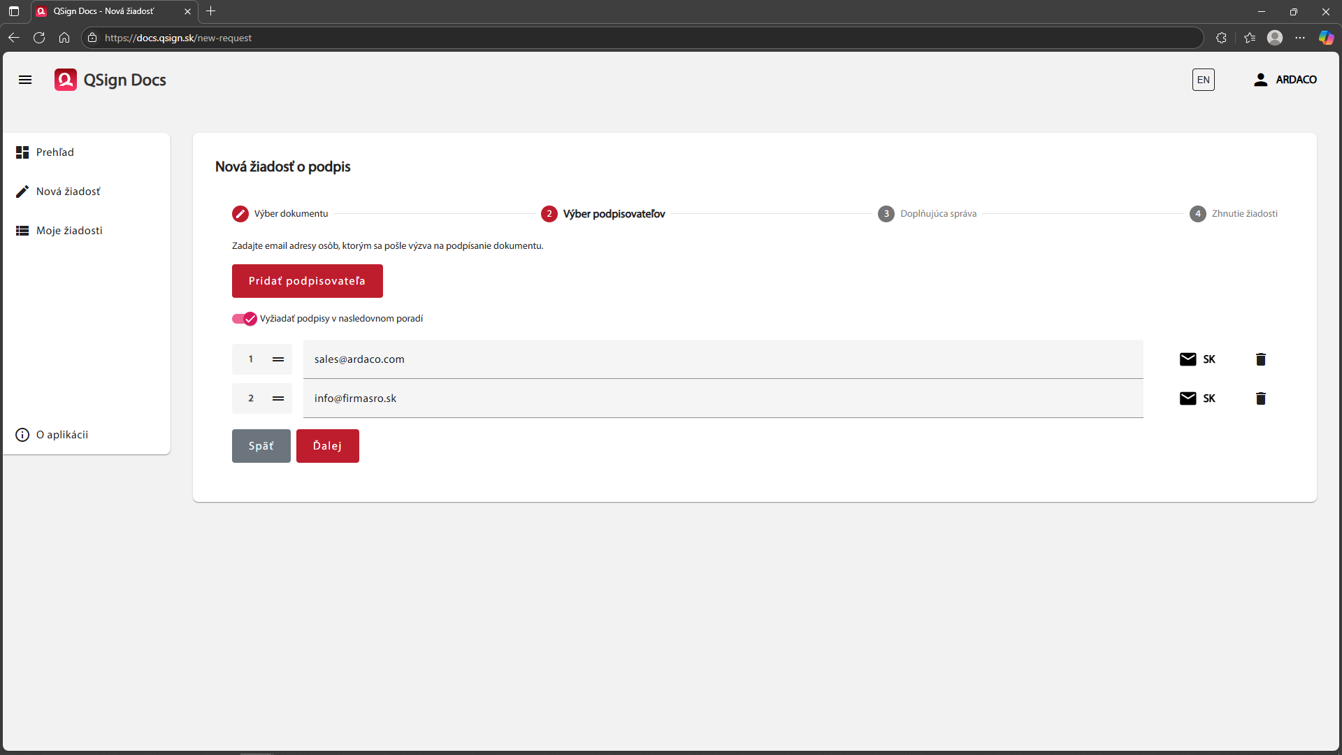 Každý podpisovateľ dostane výzvu na podpis do svojej e-mail schránky.