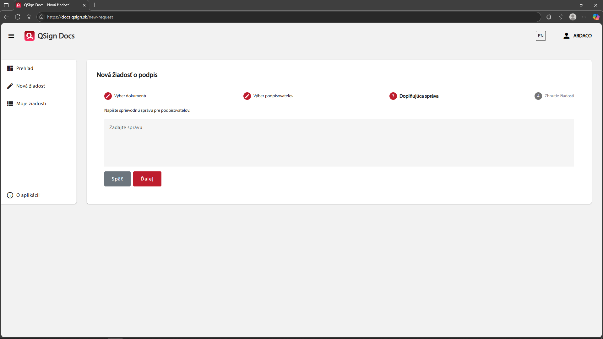 V dnešnom dynamickom svete často nastávajú situácie, keď potrebujete aby dokument podpísala iná osoba alebo viacero osôb - či už kolegovia, obchodní partneri alebo klienti. Posielanie dokumentov e-mailom tam a späť je zdĺhavé, neprehľadné a neefektívne. Preto je tu QSign Docs - moderný webový portál, ktorý Vám podpisovanie zjednoduší a zprehľadní.