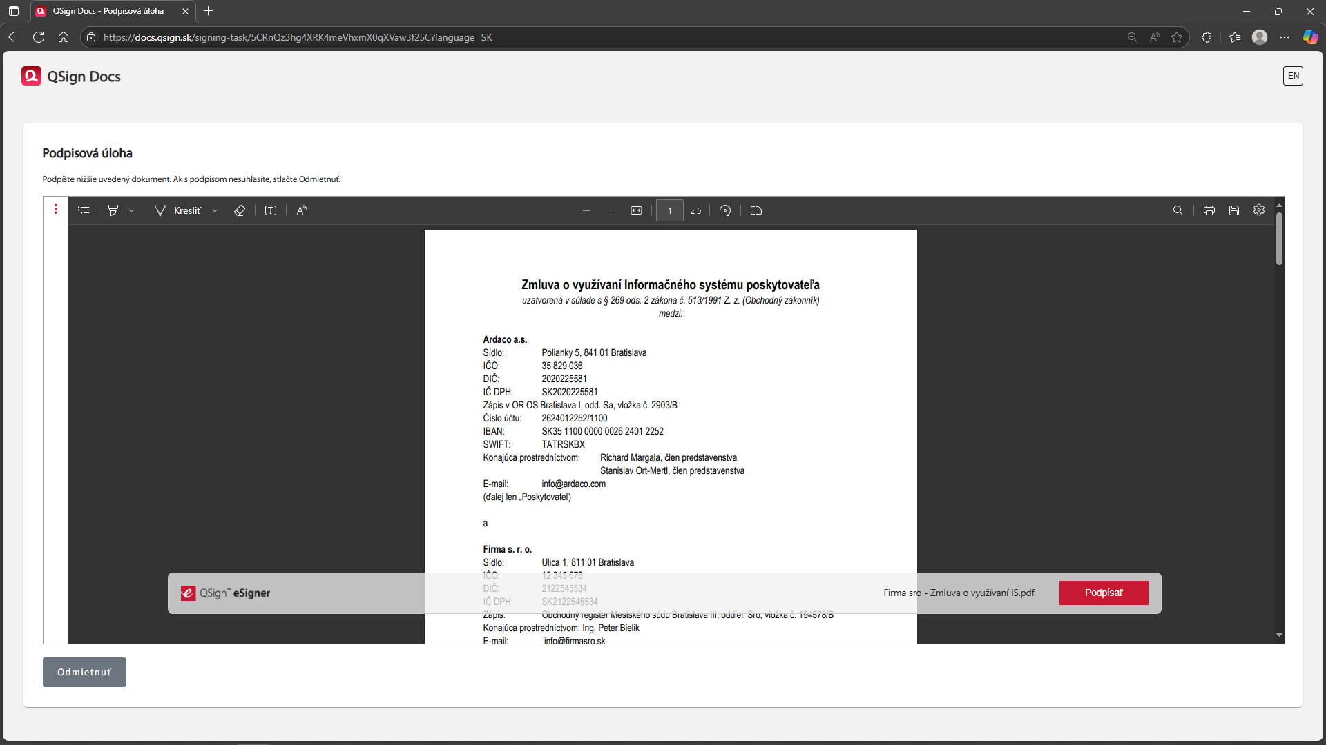 - Uveďte osoby, ktoré májú dokument podpísať.